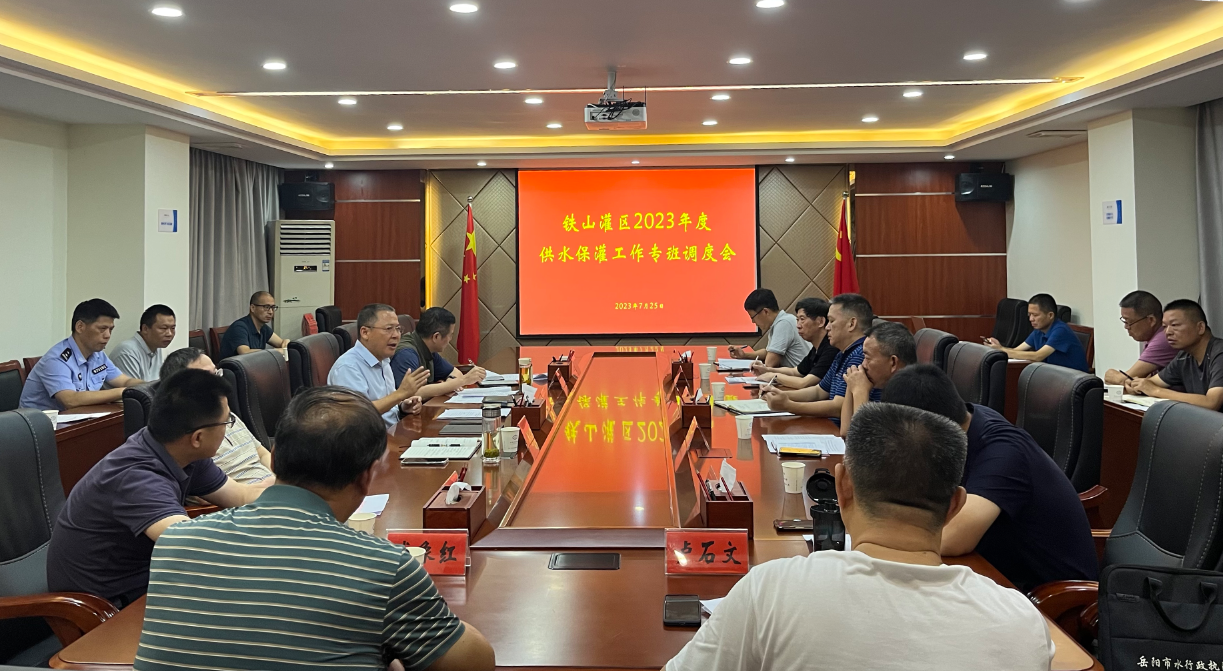 7月25日,市水利局召开铁山灌区2023年度供水保灌工作专班调度会。会议由市水利局党组成员、副局长许石兵主持,市铁山供水工程事务中心主任冯兴亮,作铁山灌区供水保灌实施方案工作汇报。市水旱灾害防御事务中心、市水务综合执法支队、市水利局相关科(室)、市铁山供水工程事务中心相关部(办)、铁山南北灌区管理所及铁山派出所有关同志参加会议。