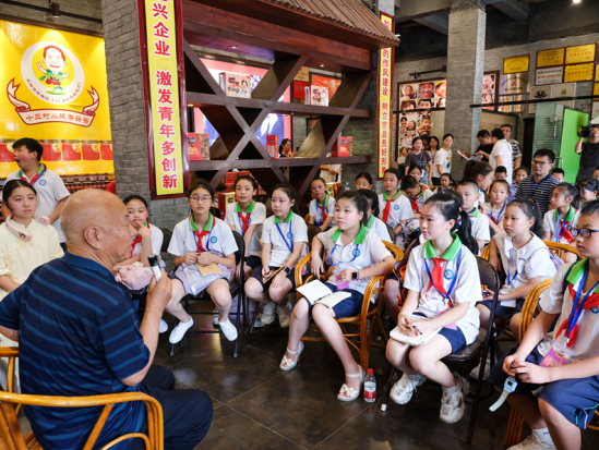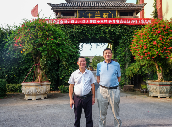 李国武在骄阳下兴致勃勃为大家导游、拍照。大小诗人们漫步生态型厂区,参观笑脸墙、“德”字碑、地下古酱窖、农耕文化展示厅、非遗工坊、花草果园。一个个自然生态、人文景点,展示着十三村生态保护和非遗文化、精神文明建设的累累硕果。