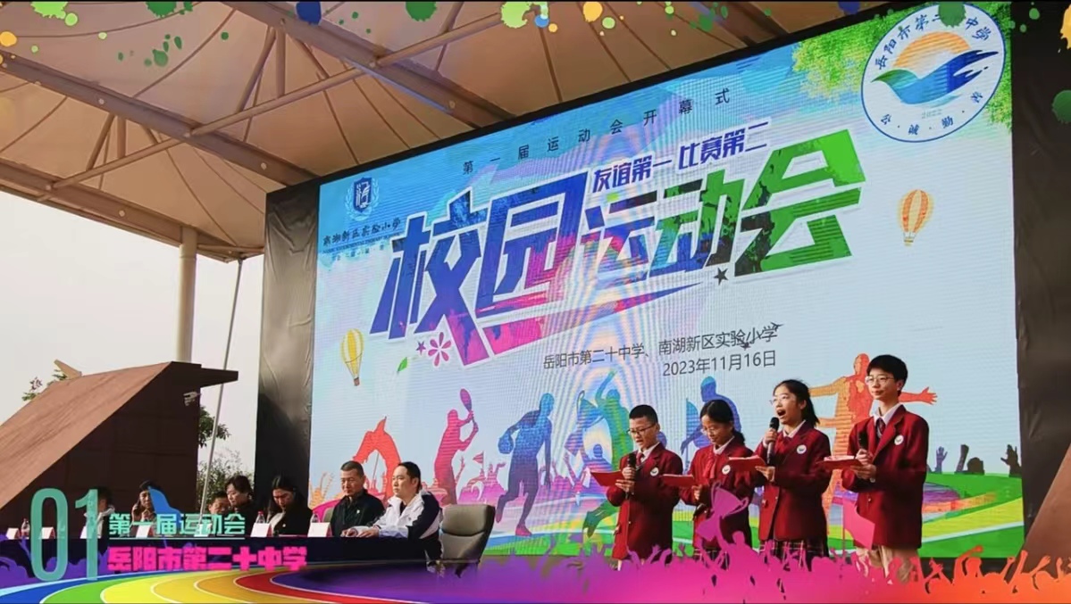 为促进学生德智体美劳全面发展,丰富业余生活,弘扬特长个性,岳阳市第二十中学、南湖新区实验小学特举行“‘悦’动吧,阳光少年”田径运动会。