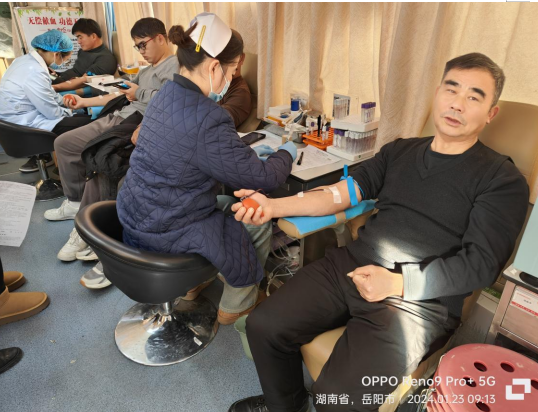岳阳广电全媒体讯(通讯员 何勇)2024年1月23日--25日,屈原管理区红十字会组织党员干部及群众开展“汇聚寒冬热血 让爱逐光前行”冬季无偿献血活动。此次活动旨在提高广大居民对献血知识的认识,鼓励他们通过实际行动为病患群体提供及时的医疗援助。